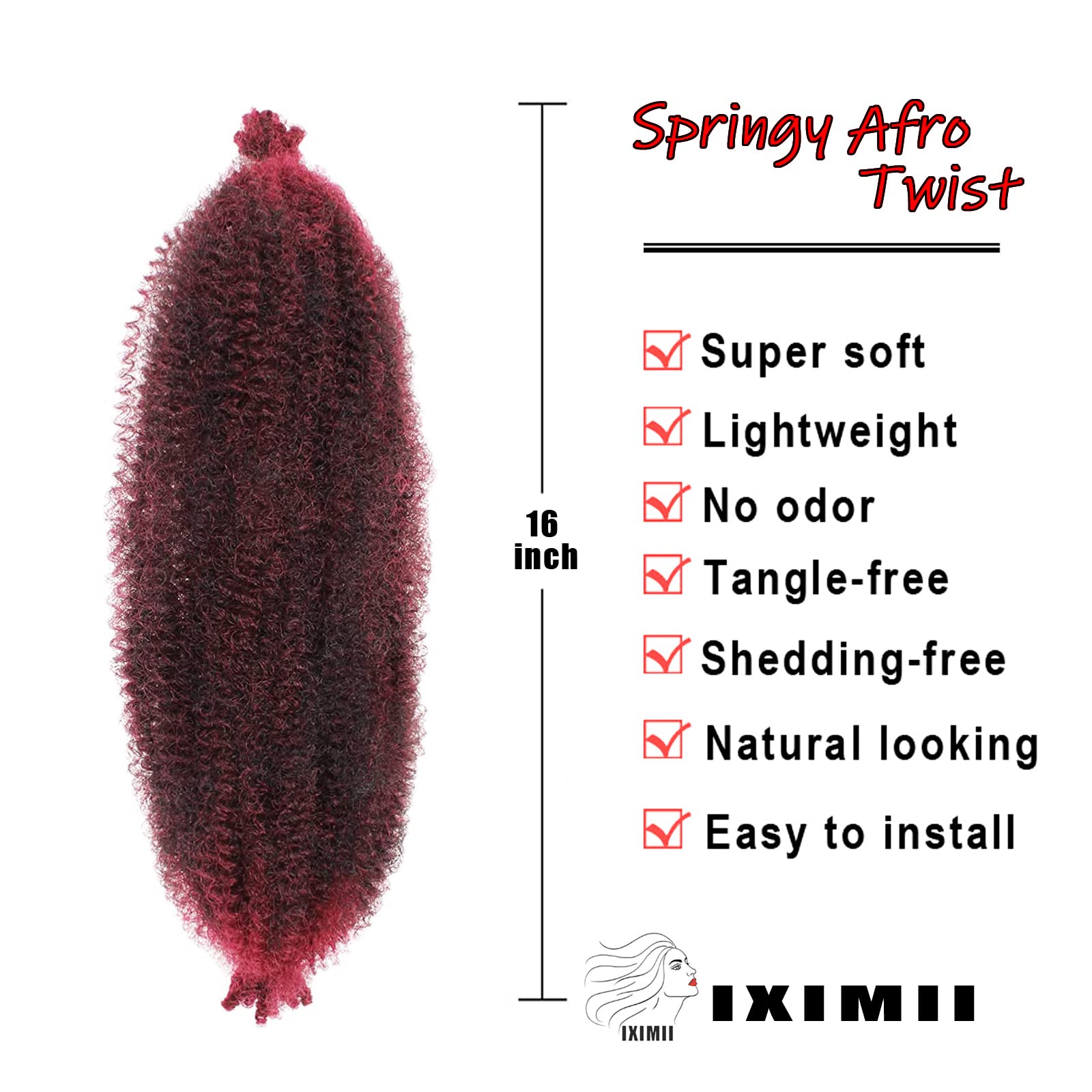 16 Inch Burgundy Springy Afro Twist Hair 3 Packs Red Pre Separated Kinky Marley Twist Braiding Hair Soft Pre Fluffed Crochet Synthetic Hair Extensions For Spring Twists And Bomb Twists Style